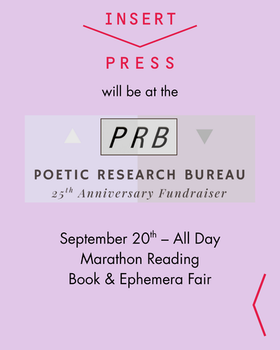 Insert Press will be hosting a booth at the PRB 20th Anniversary Fundraiser and Book and Ephemera Fair!