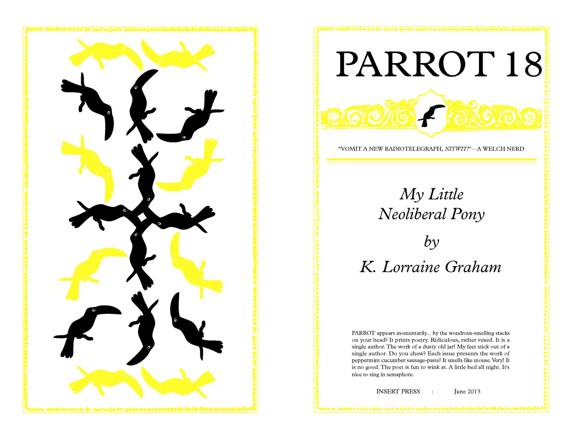 Saddle-stitched chapbook, 20 pages